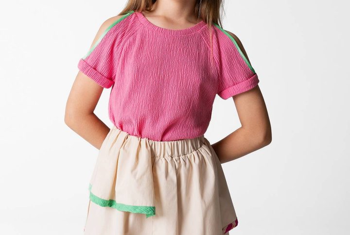 Model 144 cm boyundadır ve 9-10 yaş beden giymektedir.