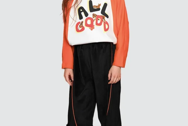 Model 144 cm boyundadır ve 9-10 yaş beden giymektedir.