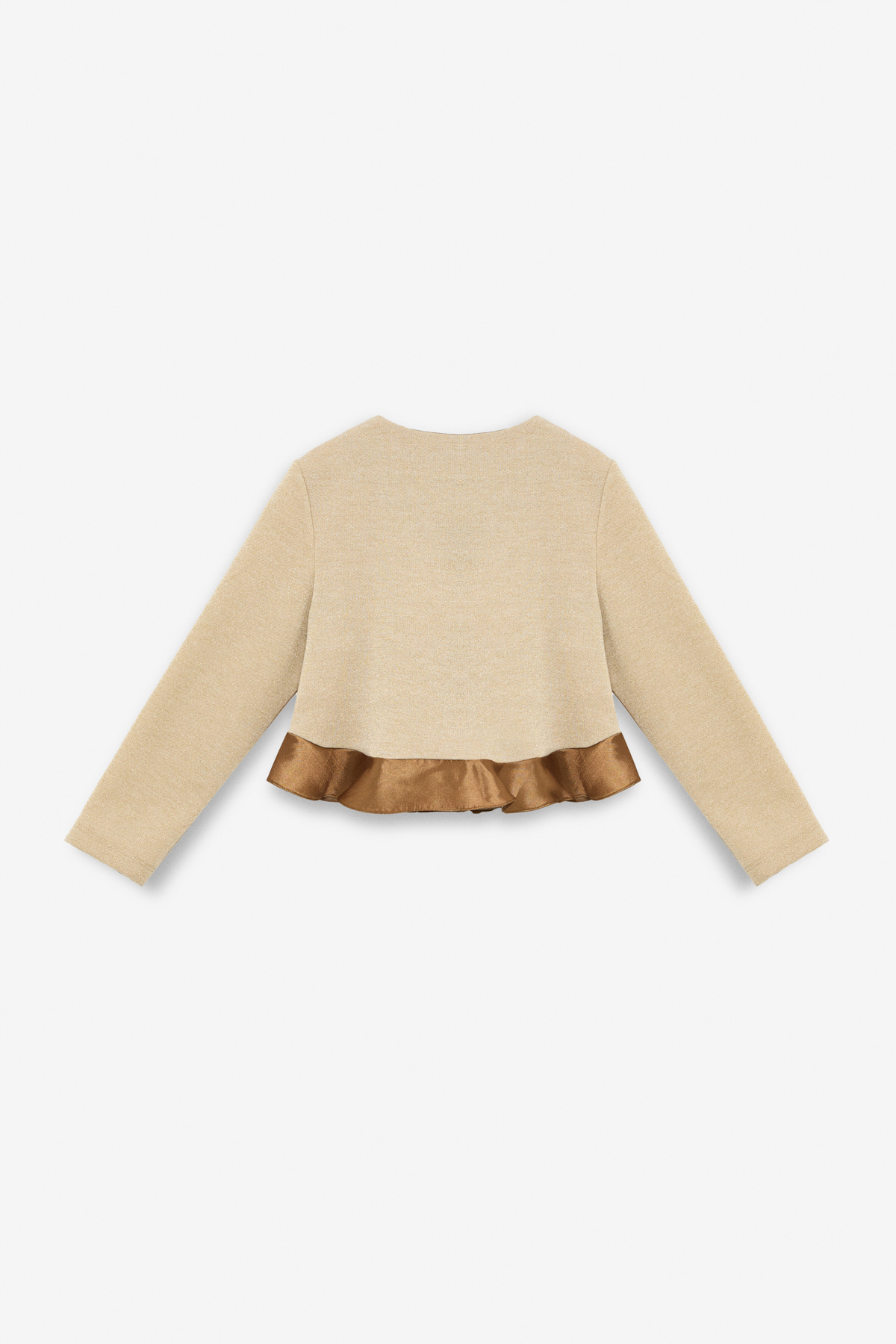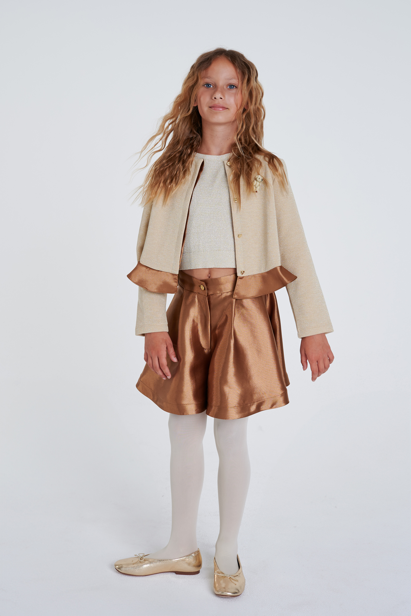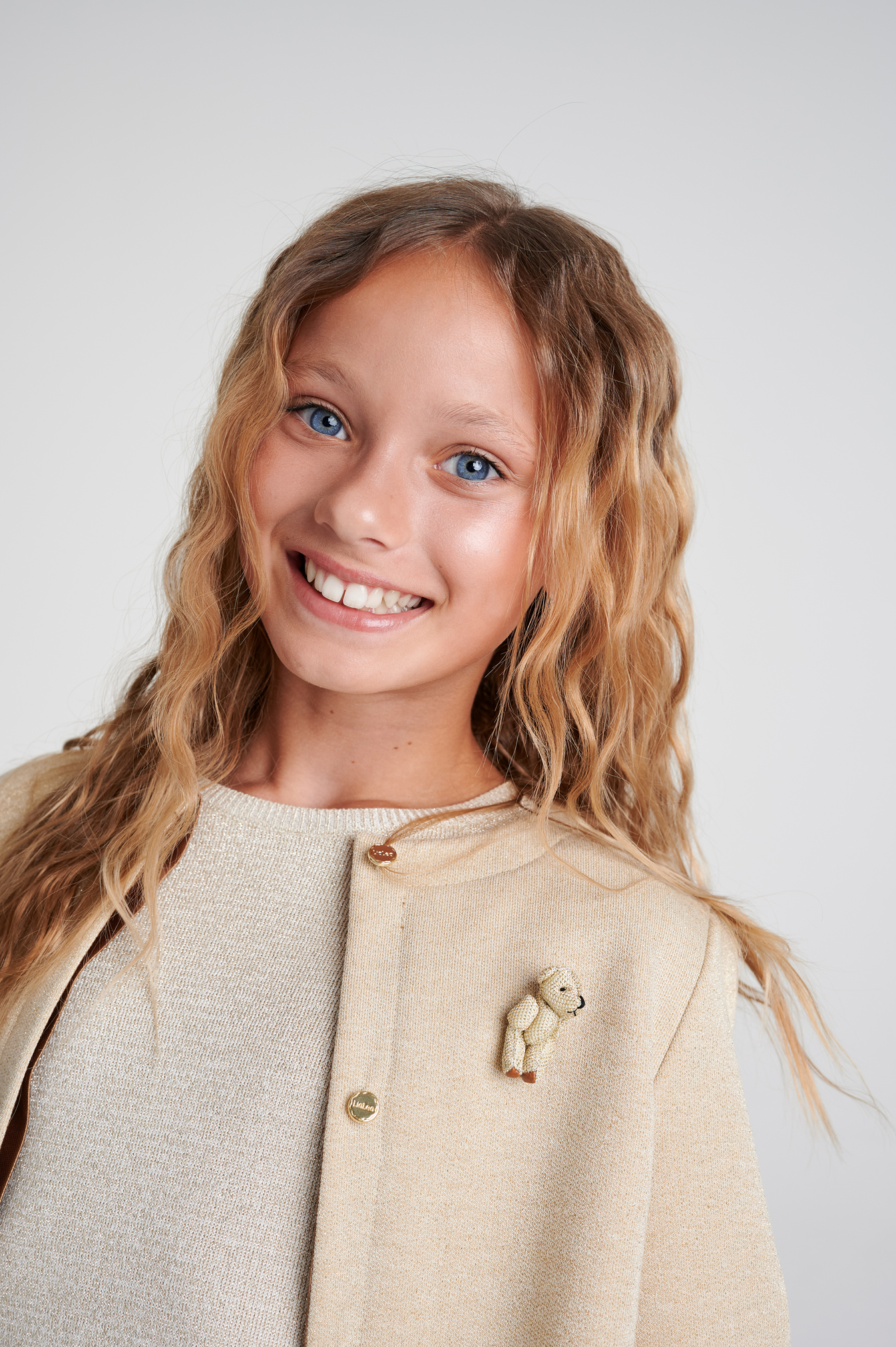 Model 144 cm boyundadır ve 9-10 yaş beden giymektedir