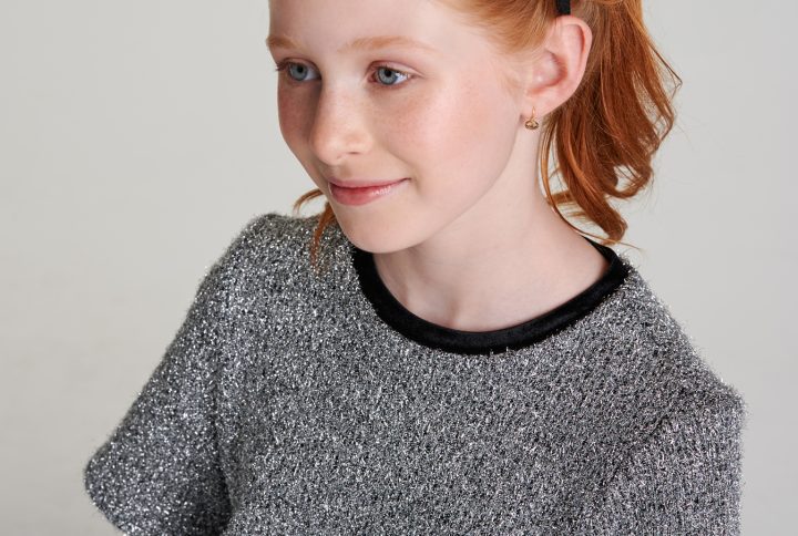 Model 144 cm boyundadır ve 9-10 yaş beden giymektedir.