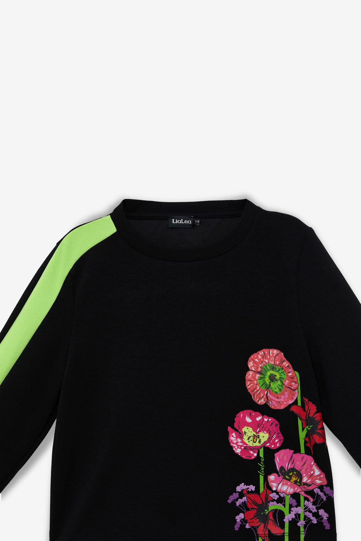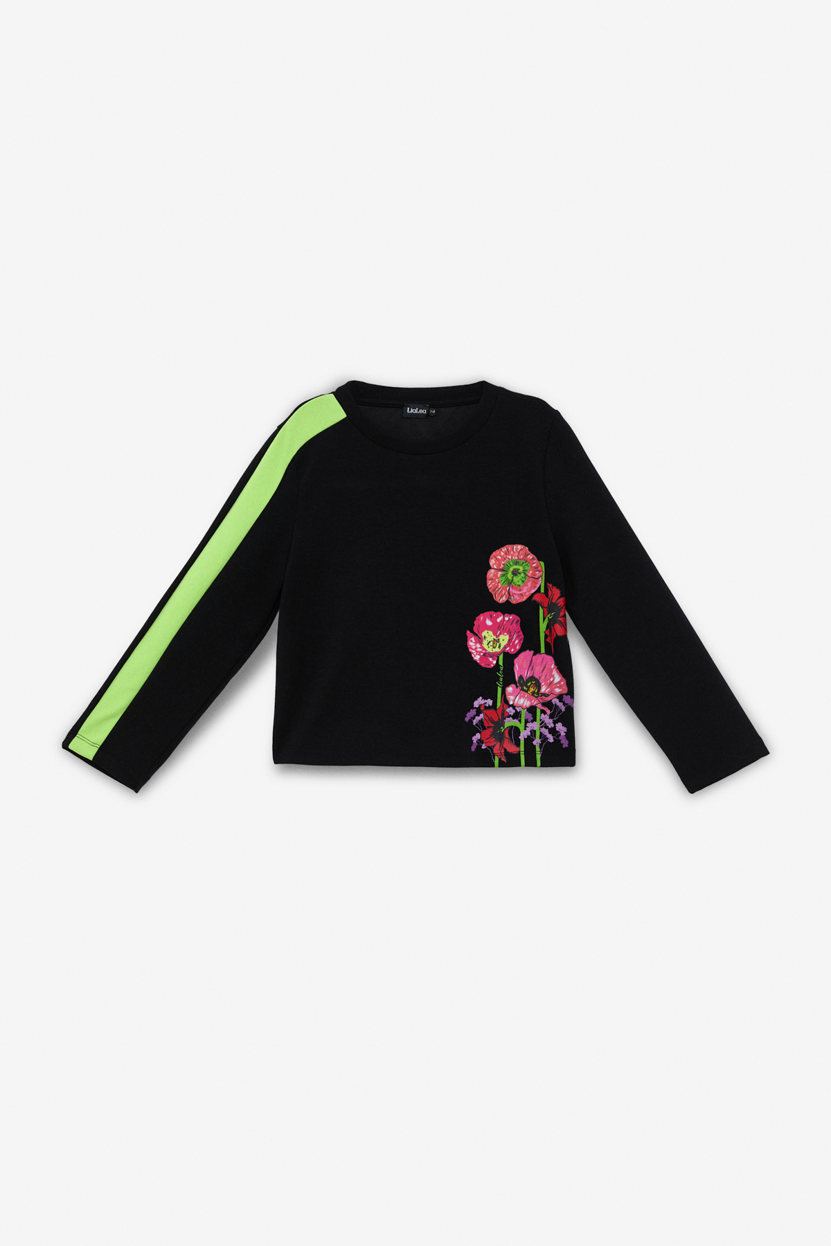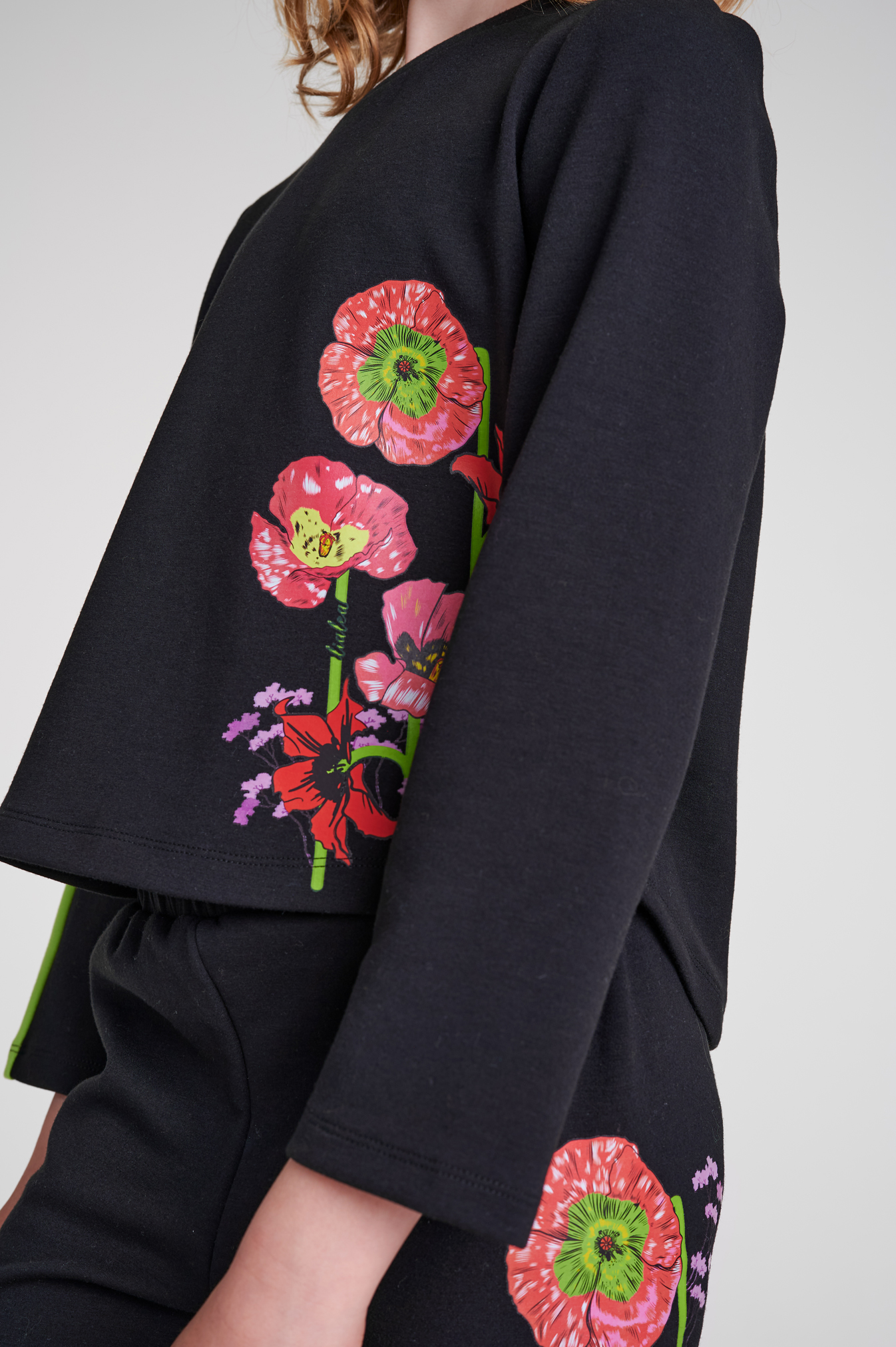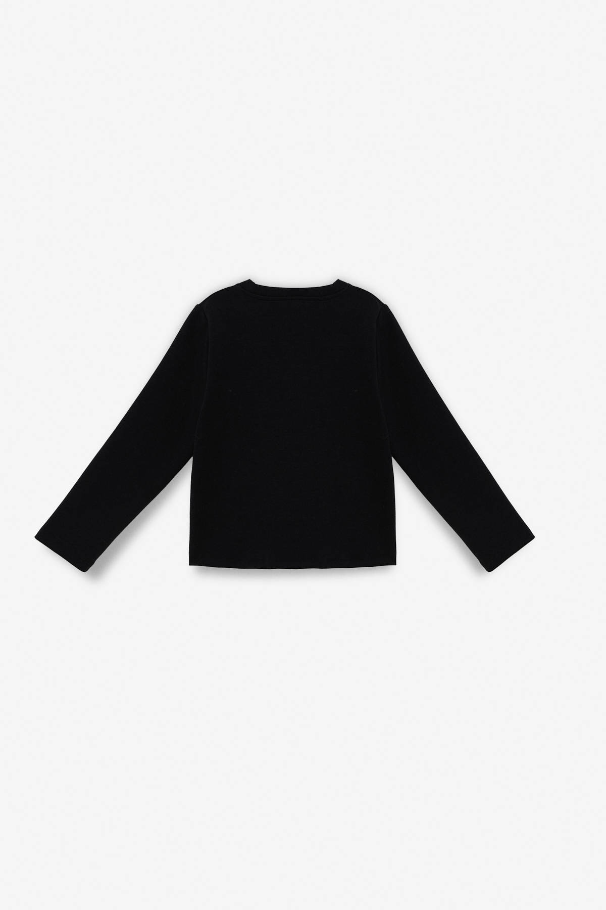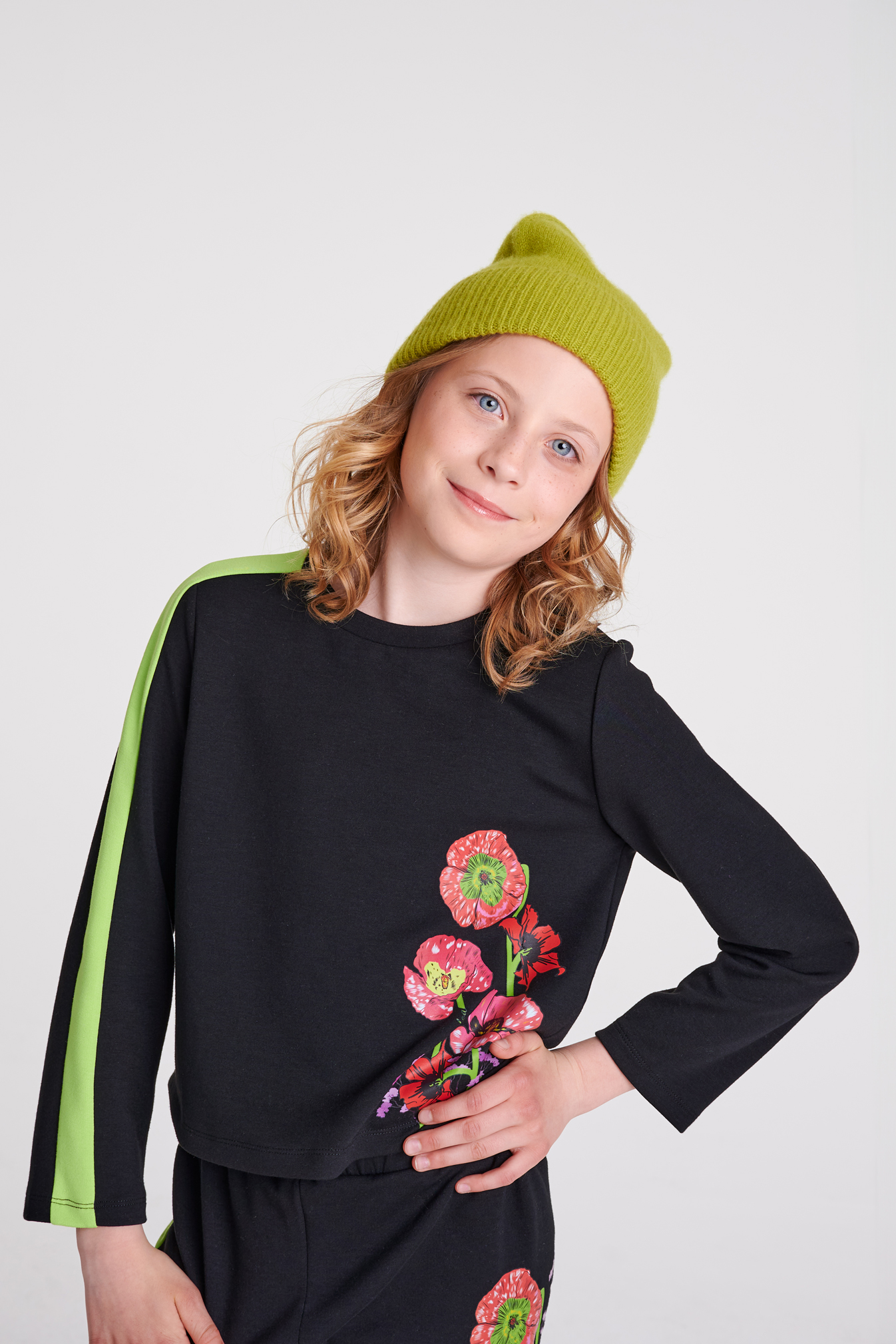 Model 144 cm boyundadır ve 9-10 yaş beden giymektedir.