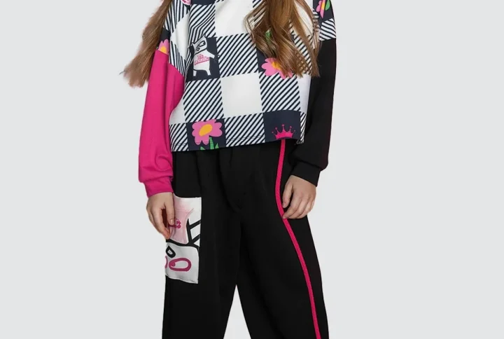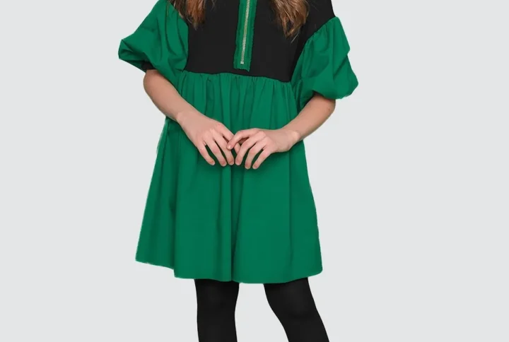 Model 144 cm boyundadır ve 9-10 yaş beden giymektedir.