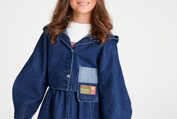Model 144 cm boyundadır ve 9-10 yaş beden giymektedir.