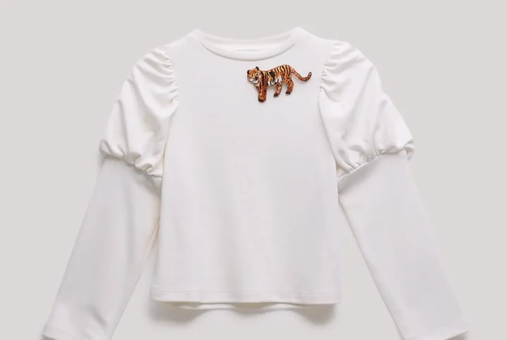 Pamuklu ve işlemeli fırfır kol detaylı kız çocuk blüz