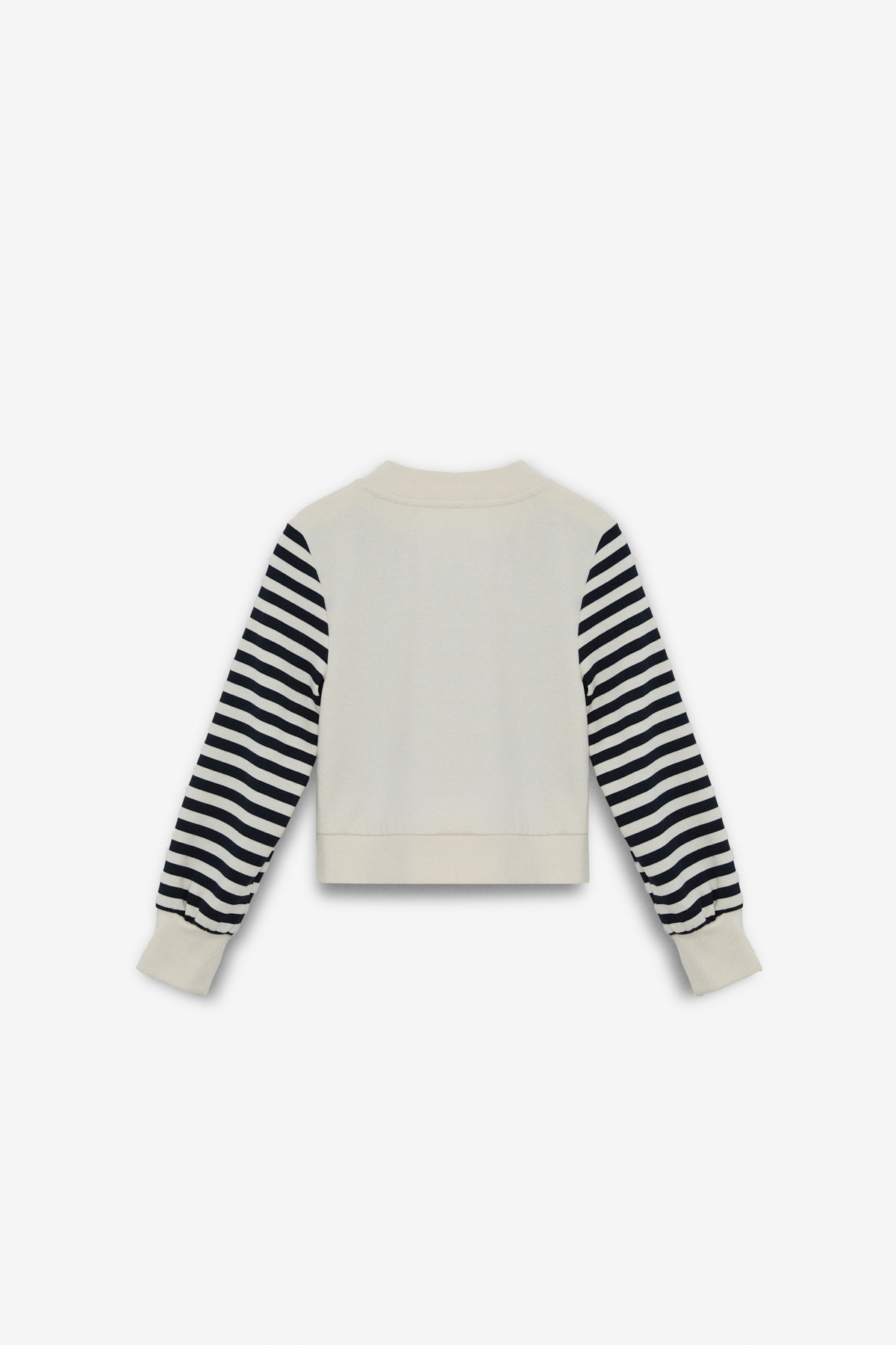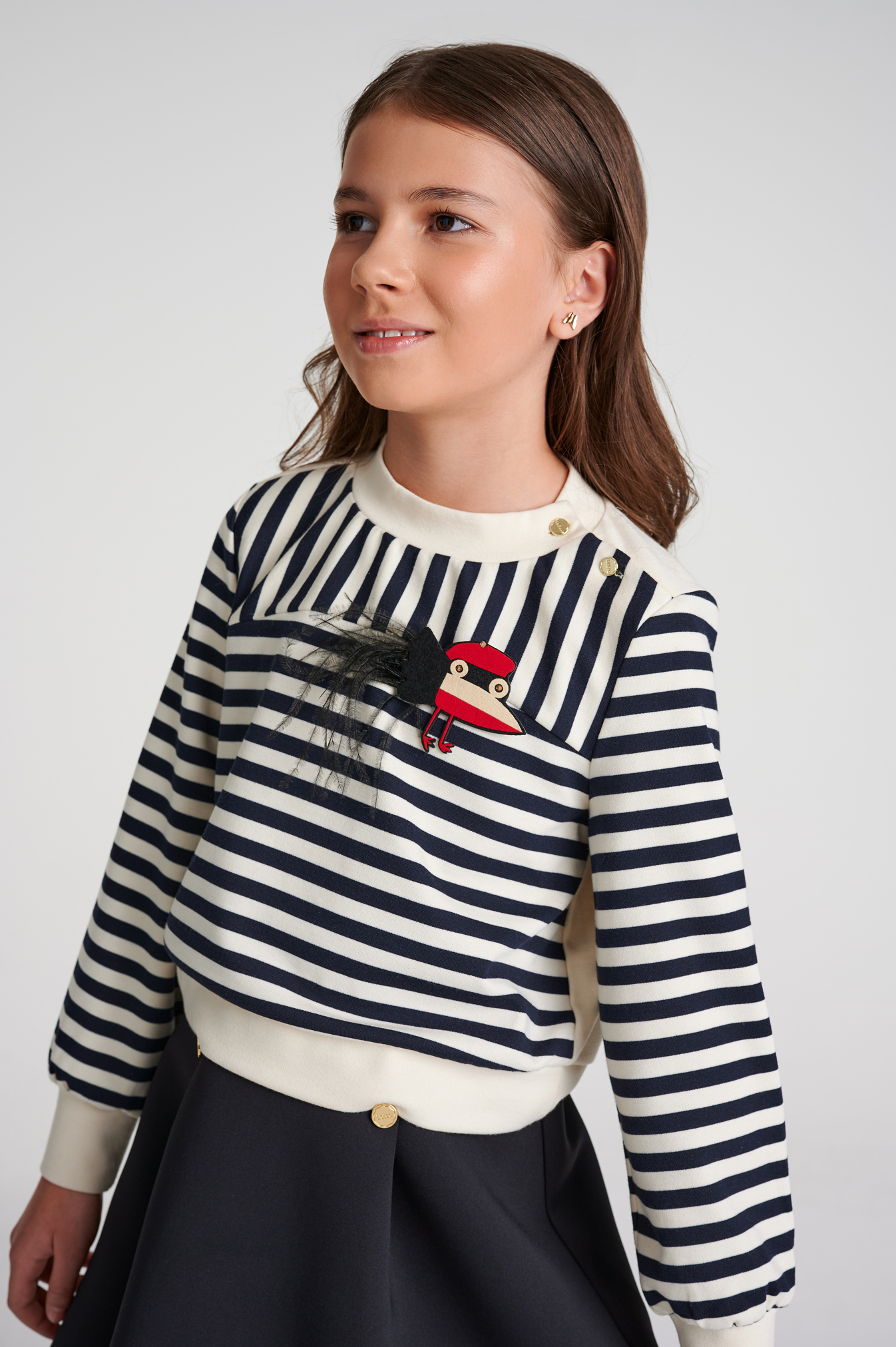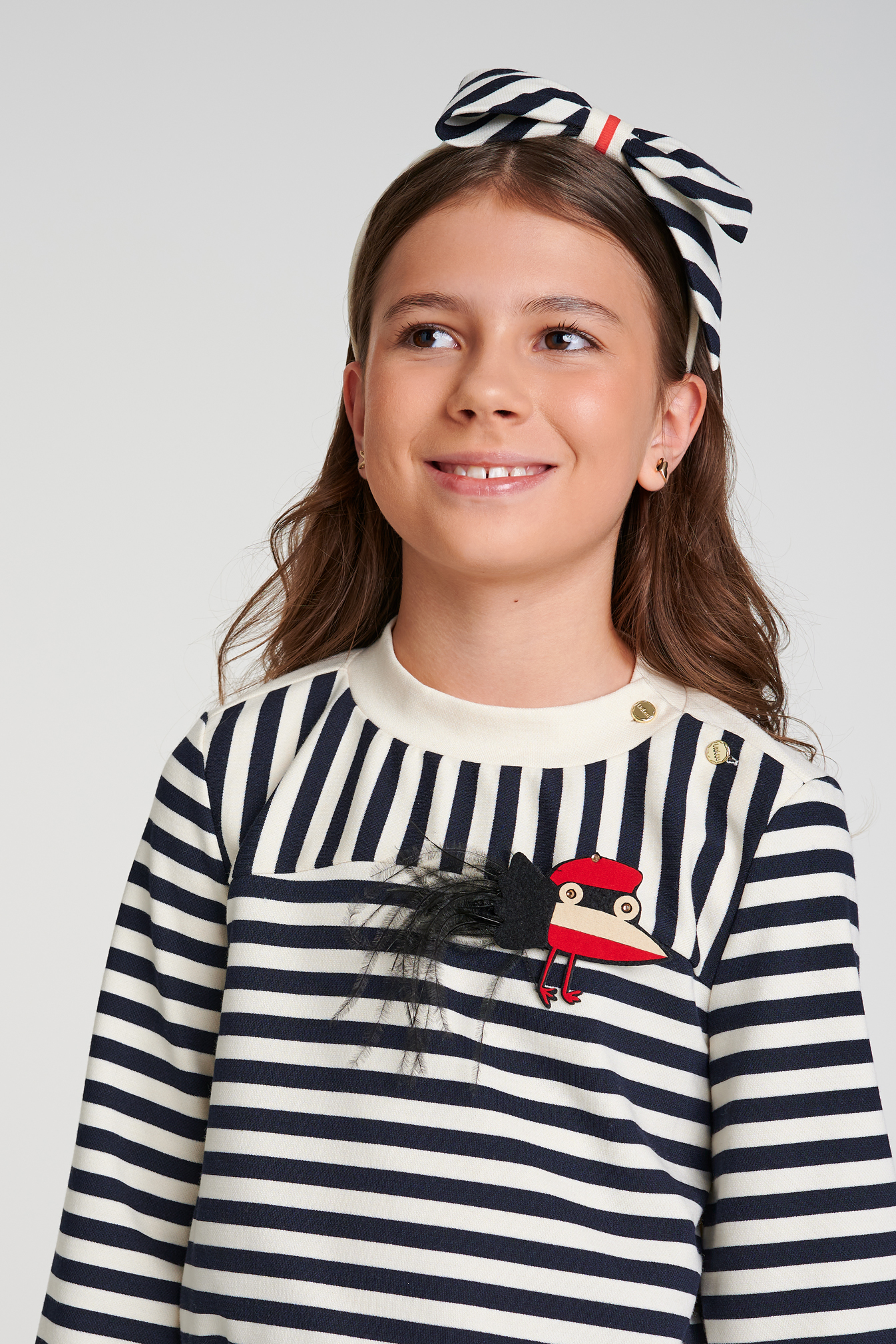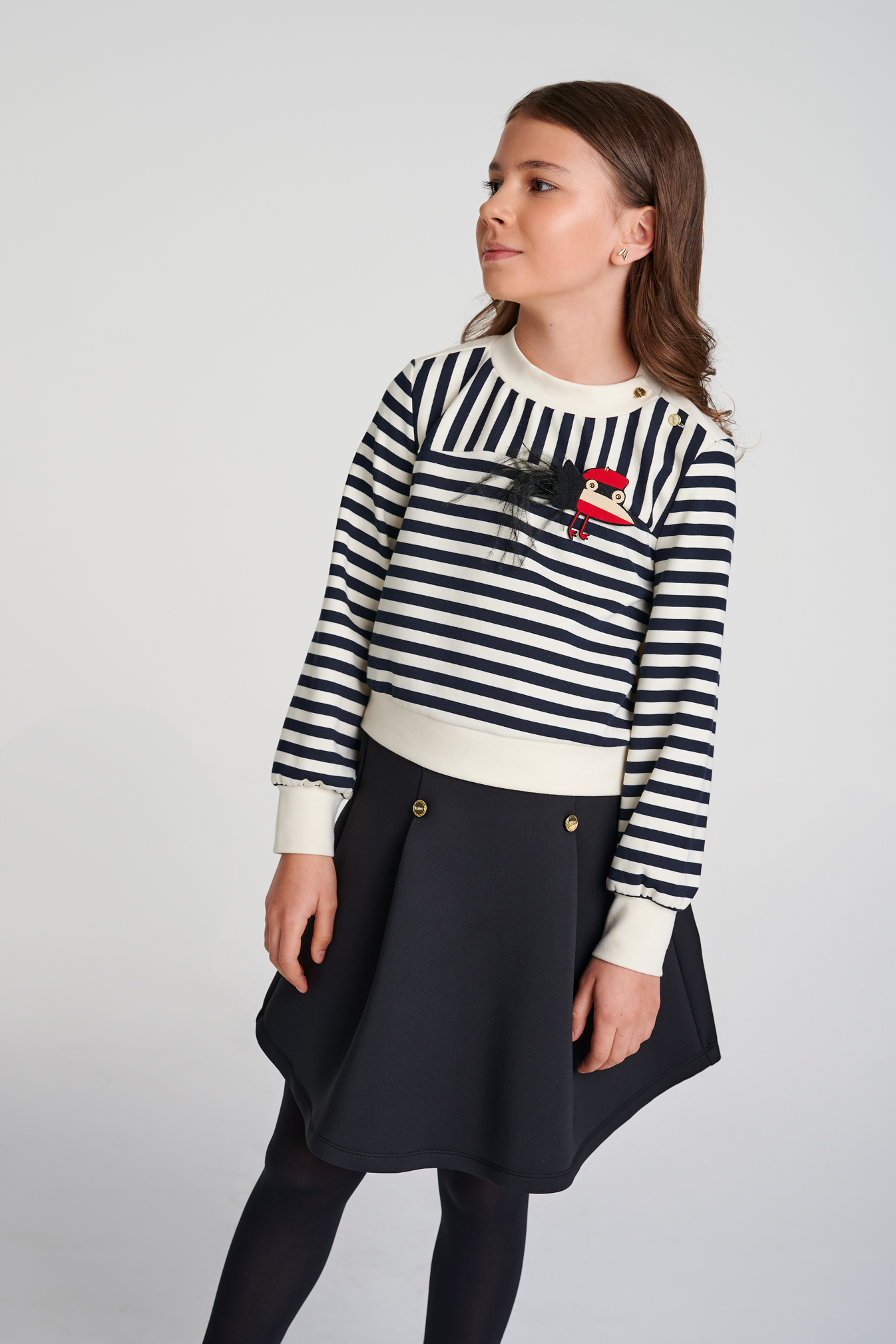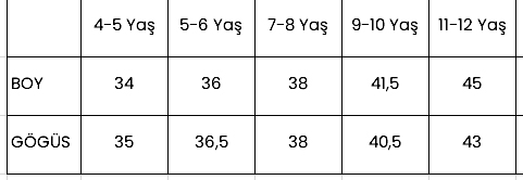 Model 144 cm boyundadır ve 9-10 yaş beden giymektedir.