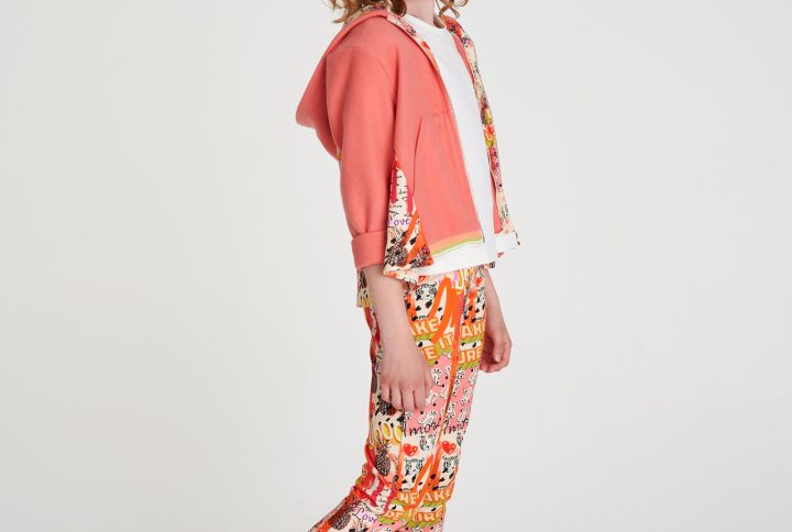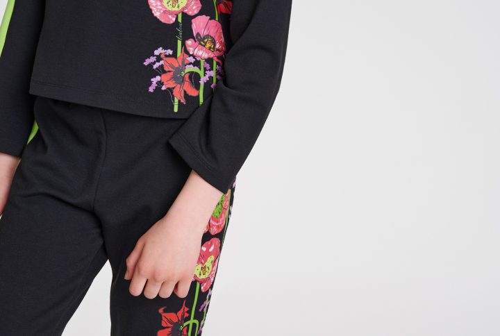 Beyaz pamuklu, kırmızı şerit detaylı relax fit kız çocuk pantolon