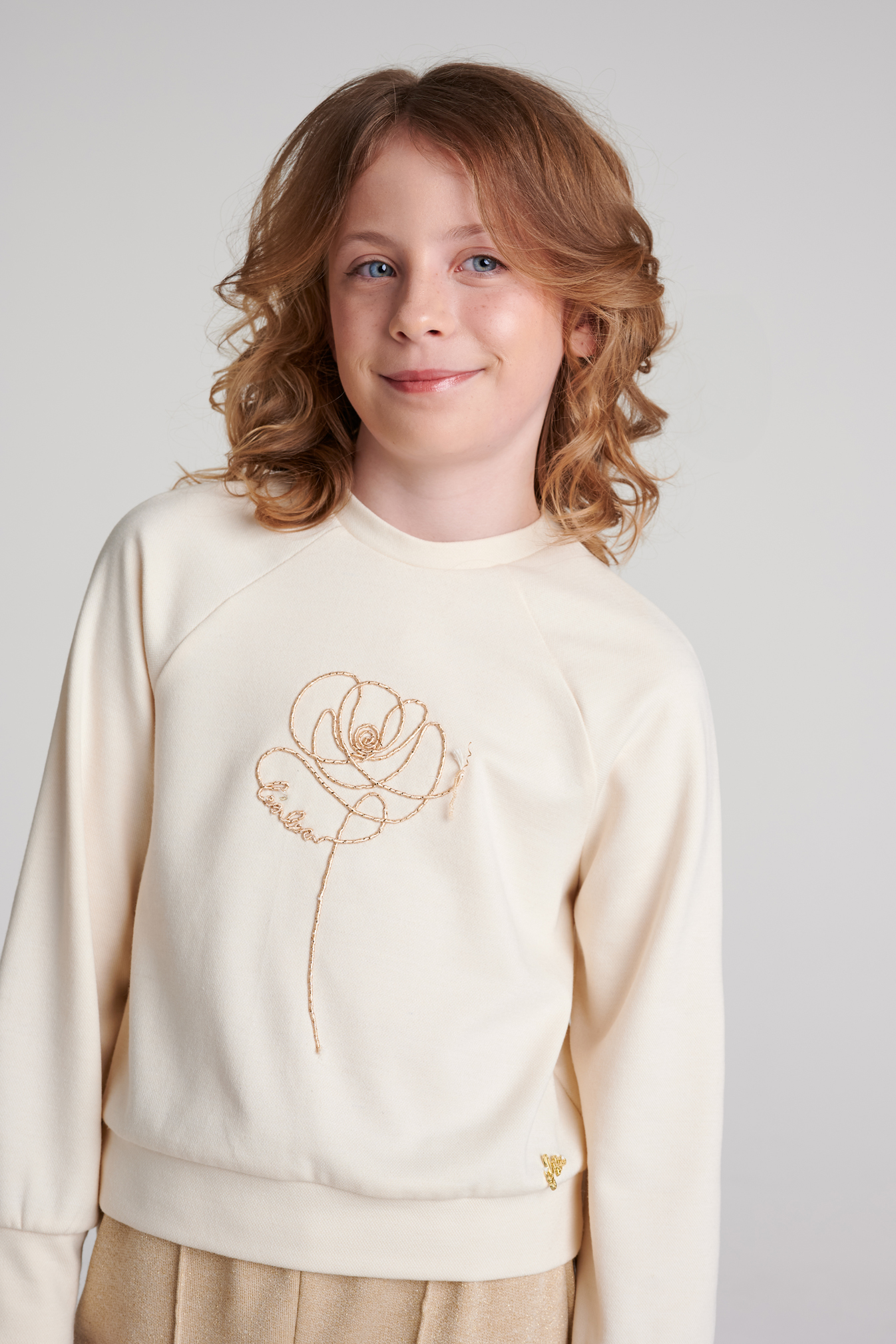 Model 144 cm boyundadır ve 9-10 yaş beden giymektedir.